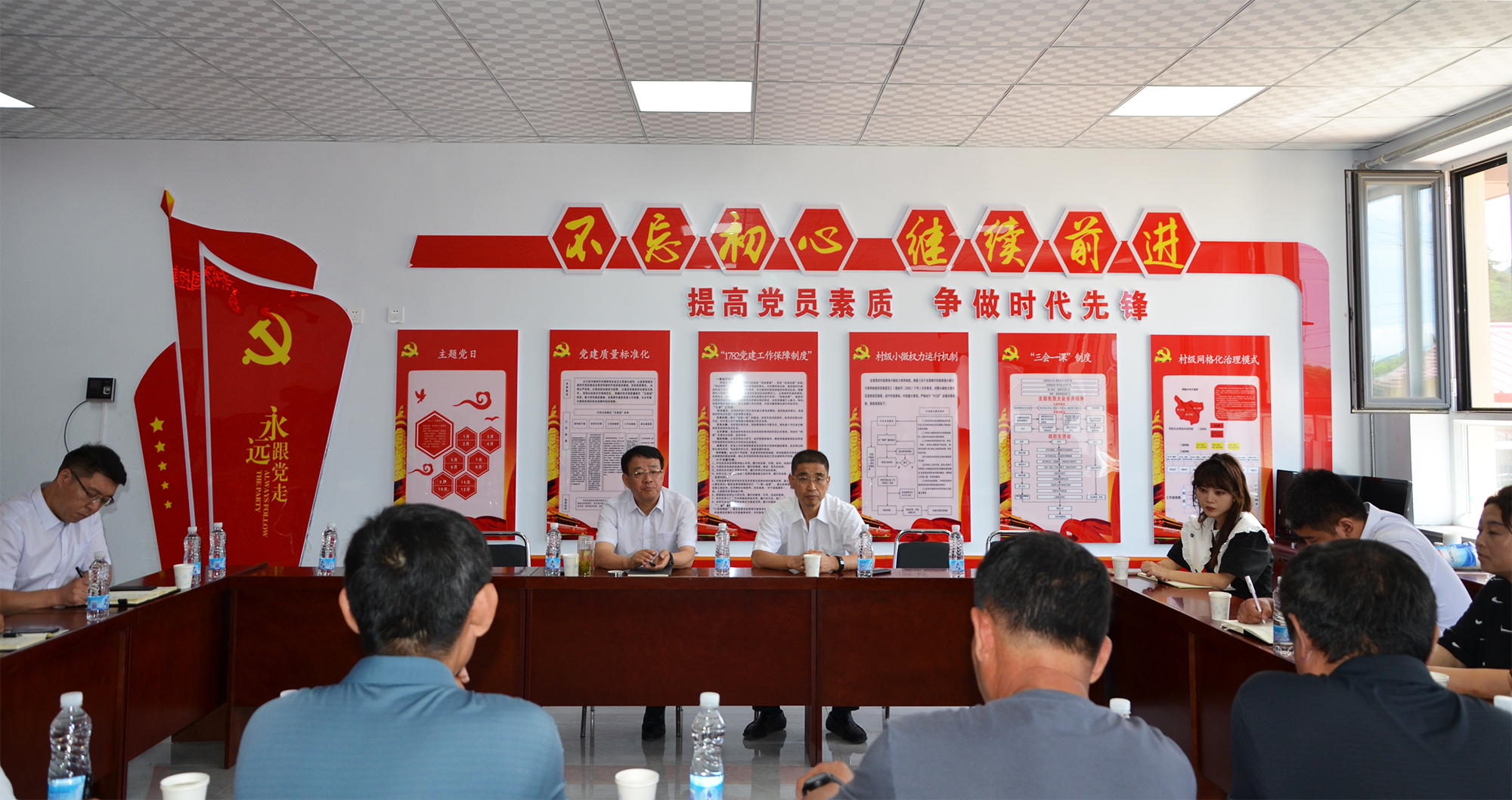 隨后,張建軍一行同牌樓鄉(xiāng)黨委書記楊瑞民、于家灣村黨支部書記(兼村委會主任)何寶祥等人在于家灣村委會召開座談會,聽取了村兩委及駐村工作隊的工作匯報。張建軍指出,駐村工作隊協(xié)助鄉(xiāng)黨委、村兩委在提升村基礎(chǔ)設(shè)施、提高村集體收入等方面做了大量卓有成效的工作,取得了良好的幫扶效果,感謝鄉(xiāng)黨委和村兩委對工作隊工作的關(guān)心和支持。今后工作隊要繼續(xù)發(fā)揮市總工會和國控集團(tuán)的自身優(yōu)勢,進(jìn)一步強(qiáng)化村黨支部建設(shè),大力發(fā)展產(chǎn)業(yè)振興,健全防止返貧監(jiān)測機(jī)制,探索一條農(nóng)村高質(zhì)量發(fā)展之路,提高村民幸福感、滿意度。座談會結(jié)束后,就如何深入開展鄉(xiāng)村振興工作和提升駐村幫扶效果,進(jìn)行了深入交流。