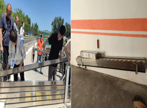兩宮門地下停車場因地勢較低汛期的最大隱患就是雨水倒灌,這次防汛演練是一次實(shí)戰(zhàn)演練,用時(shí)5分鐘就完成了一處停車場入口的演練內(nèi)容,做到擋板安裝完畢兩端螺銷固定不松動,擋板中部鋼結(jié)構(gòu)支護(hù)不滑動,防汛沙袋堆堵密實(shí)。